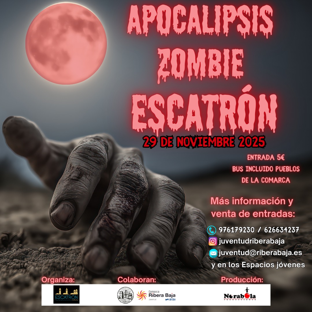El grupo Come To Lisboa informa que el sábado 29 de noviembre tendrá lugar la actividad «Apocalipsis Zombie» en Escatrón. Entradas a la venta en el espacio joven. Precio 5€.