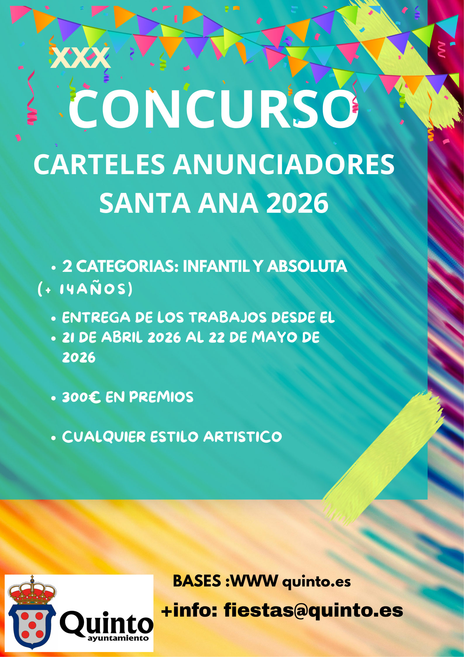 La concejalía de Festejos convoca una nueva edición del concurso de portadas del Anuario 2026 y de carteles anunciadores de fiestas Santa Ana. Desde el 21 de abril hasta el 22 de mayo se pueden presentar los diferentes trabajos, tanto adultos como infantil. Si estás interesado en participar, te dejamos a continuación el detalle de las bases del concurso.