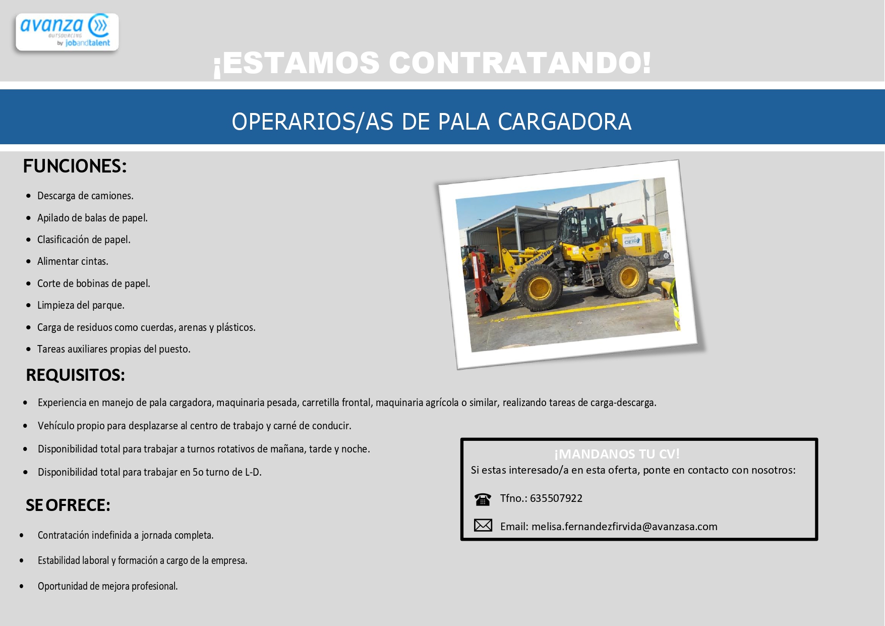 La empresa Avanza ha abierto un proceso de selección de palistas para trabajar en las instalaciones de Saica El Burgo. Las personas interesadas en participar en dicho proceso pueden ponerse en contacto directamente con la empresa.