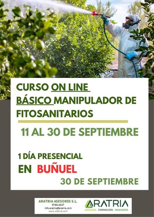 Aratria asesores informa de un curso on-line Manipulador de Fitosanitario Básico, comienza el día 11 de septiembre y finaliza el 30 de septiembre. Para más información en el teléfono 976 51 45 07, en el correo info.aratria@aratria.com ó página web www.aratria.com