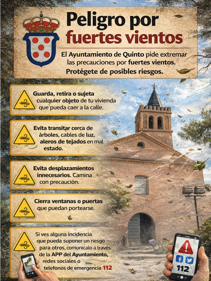 El Ayuntamiento informa que el Centro 112 ha activado el Aviso nivel NARANJA por fuertes vientos durante el martes 31 de marzo entre las 9h y las 20h. Se ruega extremar las precauciones.